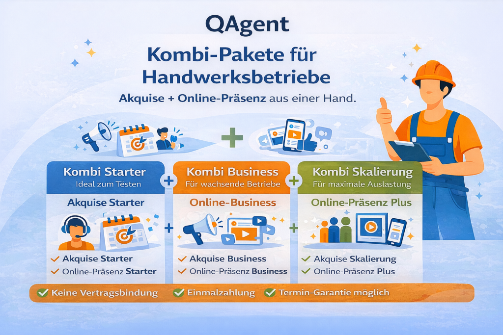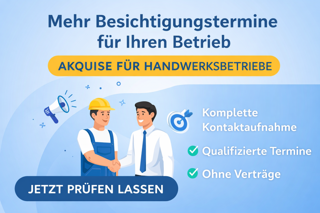 Wir helfen Betrieben dabei, konstant neue Kunden zu gewinnen und professionell aufzutreten – ohne Akquise-Stress, ohne langfristige Verträge und ohne leere Marketingversprechen.